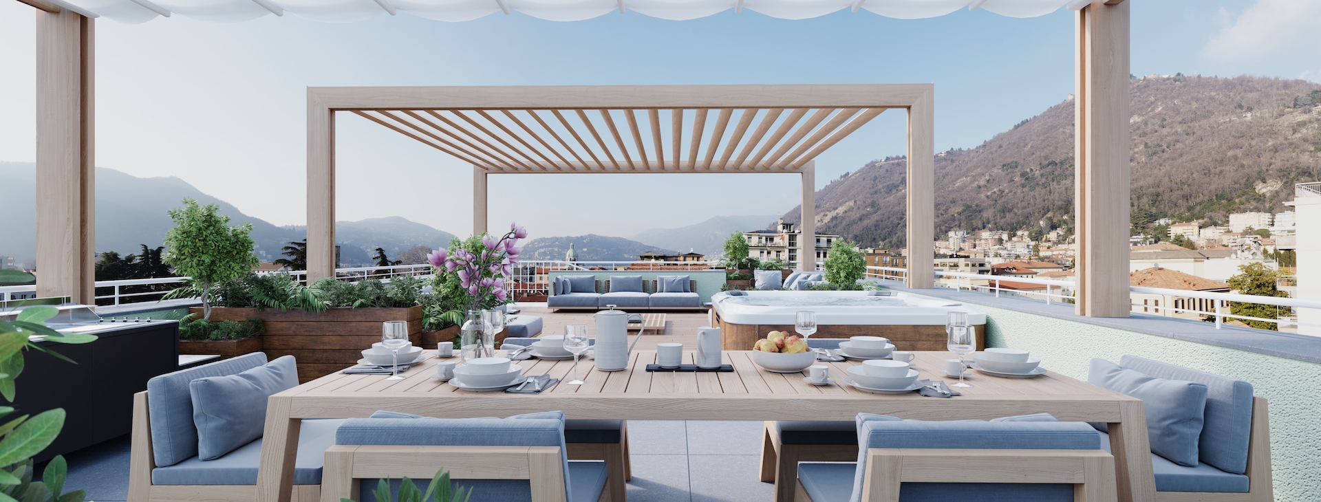 terrazze panoramiche e lastrici solari. Ogni unità può essere completata con posti auto, box e